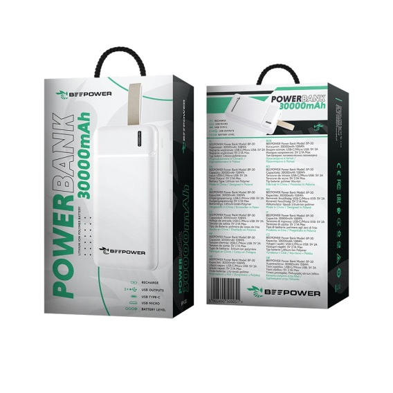 BeePower Power Bank - BP-30 30000mAh 2.1A 2 x USB biały